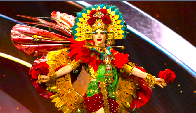 Traje típico de Xochiquetzal de Fátima Bosch. Foto: IG Miss Universo
