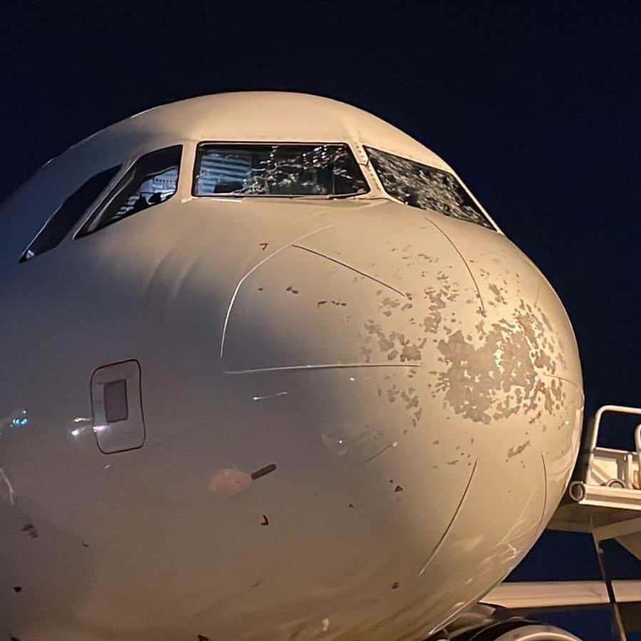 Al aterrizar revisaron que no sólo se habían rotos los parabrisas, sino que también se observaban daños en la punta del fuselaje.