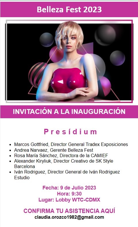 9 y 10 de julio Expo BELLEZA en el WTC de la CDMX julio 7, 2023DespertadordeMexico (62) 隆Aprovecha el precio preferencial! Por 190 pesos asiste al mejor evento de la belleza. 馃コ – YouTube PREVENTA: raquel@tradex.com.mx聽聽|聽聽Tel. (55) 5604 4900 Ext. 118 www.despertadordemexico.com