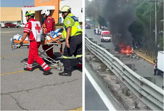 Ciudad de México; 11 de diciembre de 2025.- En el Municicpio de Lerma explotó un vehículo taxi, a la altura de la plaza comercial Outlet Lerma, sobre la carretera México Toluca.