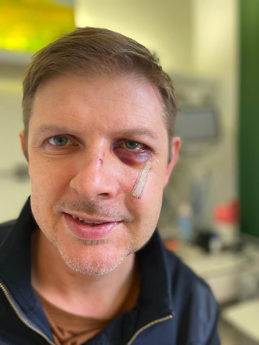 A la fecha fue dado de alta del hospital, presentando él mismo una foto con un ojo morado y un parche.