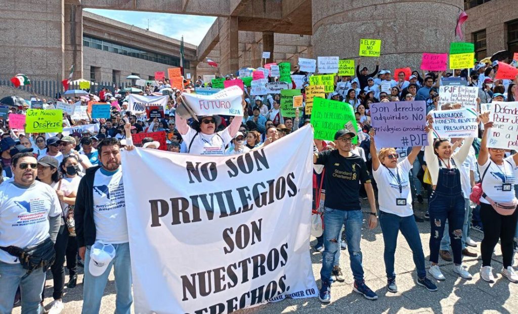 Los trabajadores de la federación señalan que eso implica que se ven afectados al eliminar a la carrera judicial, que les da la oportunidad de ir escalando por cargos de escalafón y en su momento, llegar a ser jueces, magistrados, ministros y hasta Presidente de la Corte.