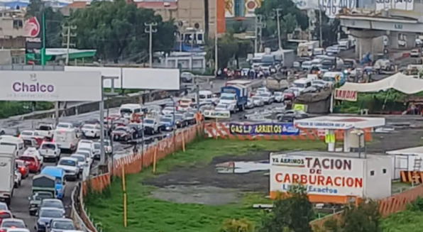 Ciudad de México; 20 de agosto de 2024.- Los vecinos de Chalco cerraron la carretera por las inundaciones.